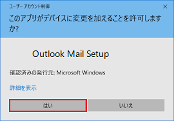 ※ 「ユーザーアカウント制御」の画面が表示された場合は、「はい」を選択してください。