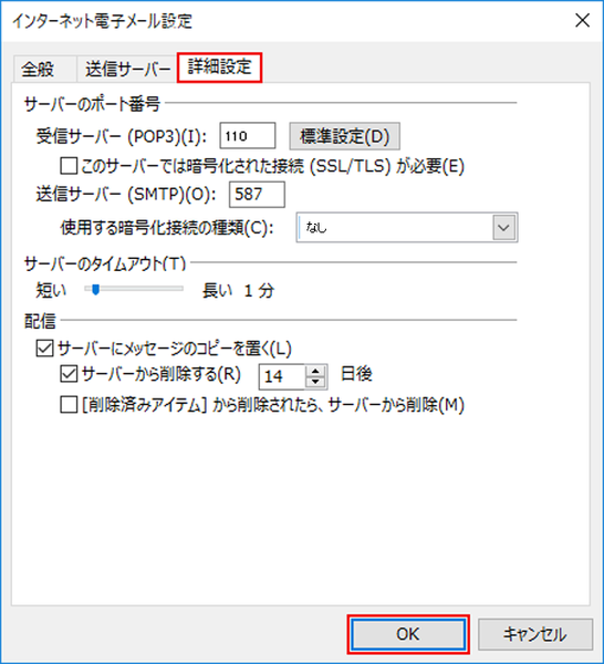手順7. [詳細設定]タブが表示されたら、以下のように設定されているか確認します。 確認が終わったら[ok]キーをクリックし、画面を閉じます。