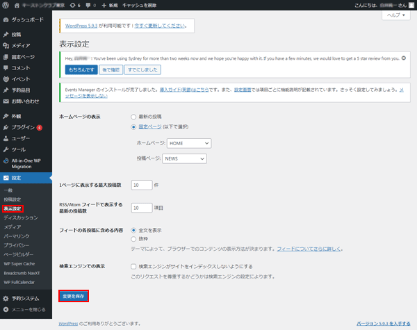ホームページの表示 ホームページのトップページが設定できます。 固定ページや投稿ページをトップページにすることができます。